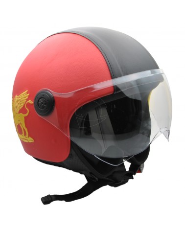 Casco da moto esclusivo con l’emblema del Leone di Venezia, simbolo di forza e libertà.